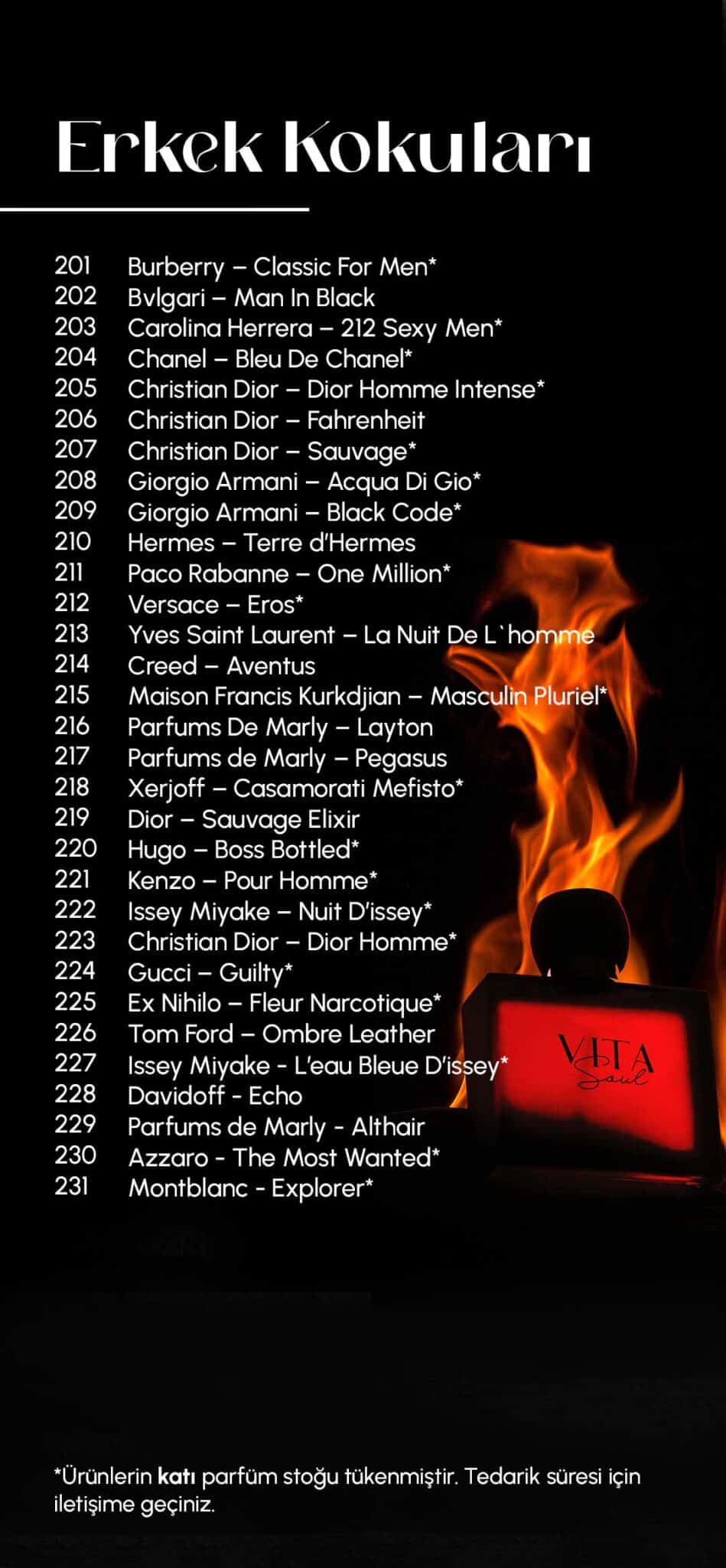 Stoklarımızda bulunan kadın, erkek ve unisex kokuları ineceleyebilirsiniz. Aklınıza takılan tüm sorular için Whatsapp üzerinden 7/24 bizimle iletişime geçebilirsiniz.